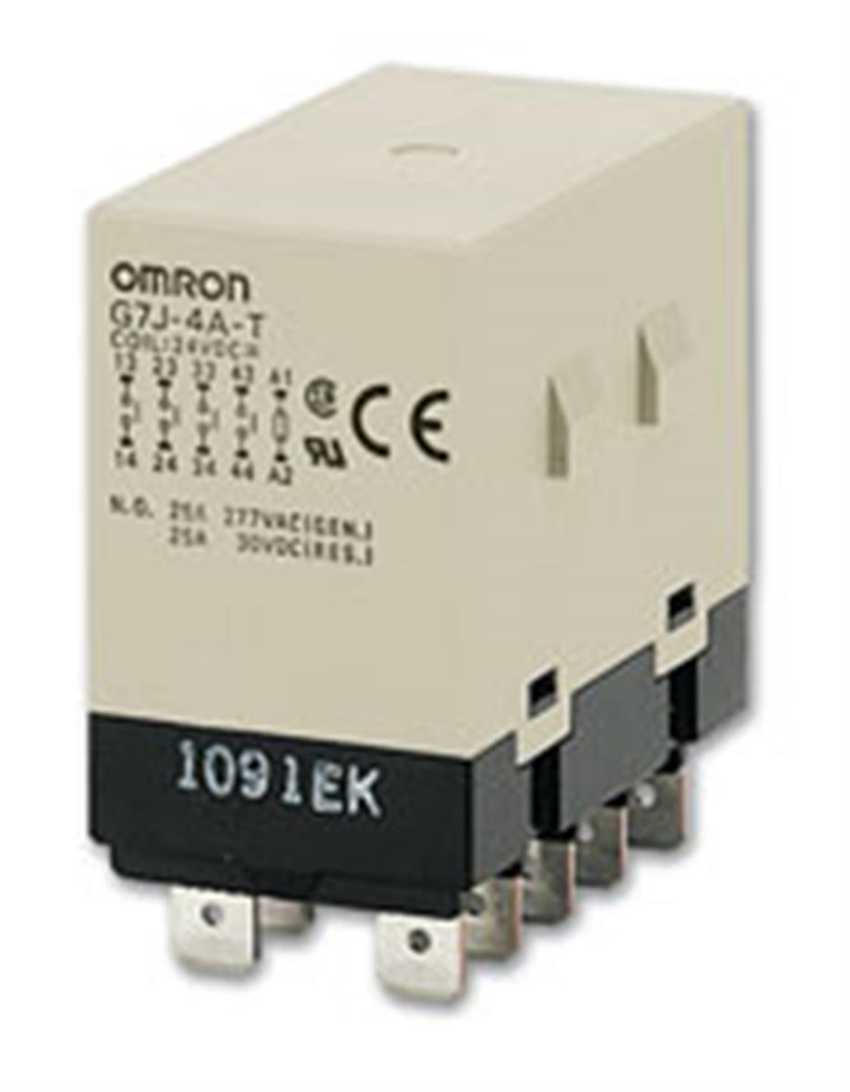 Avec un courant de charge nominal de 25 A dû à sa charnière miniature pour optimiser la puissance de commutation, le G7J peut commuter des charges de moteur comme des charges résistives et inductives. Le G7J n'a aucune vibration de contact pour les chutes de tension momentanées jusqu'à 50% de la tension nominale.