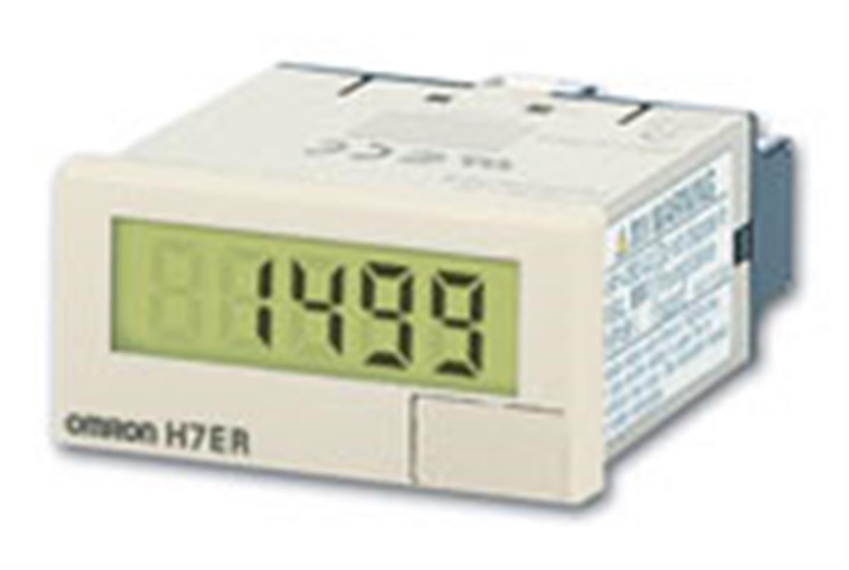 La série H7E est disponible avec un large écran affichant des caractères de 8,6 mm de haut. Elle inclut des modèles avec rétro-éclairage pour une meilleure visibilité dans les endroits faiblement éclairé. La famille H7E inclut des compteurs totalisateurs, des compteurs de temps, des tachymètres et des compteurs montés sur circuit imprimé.