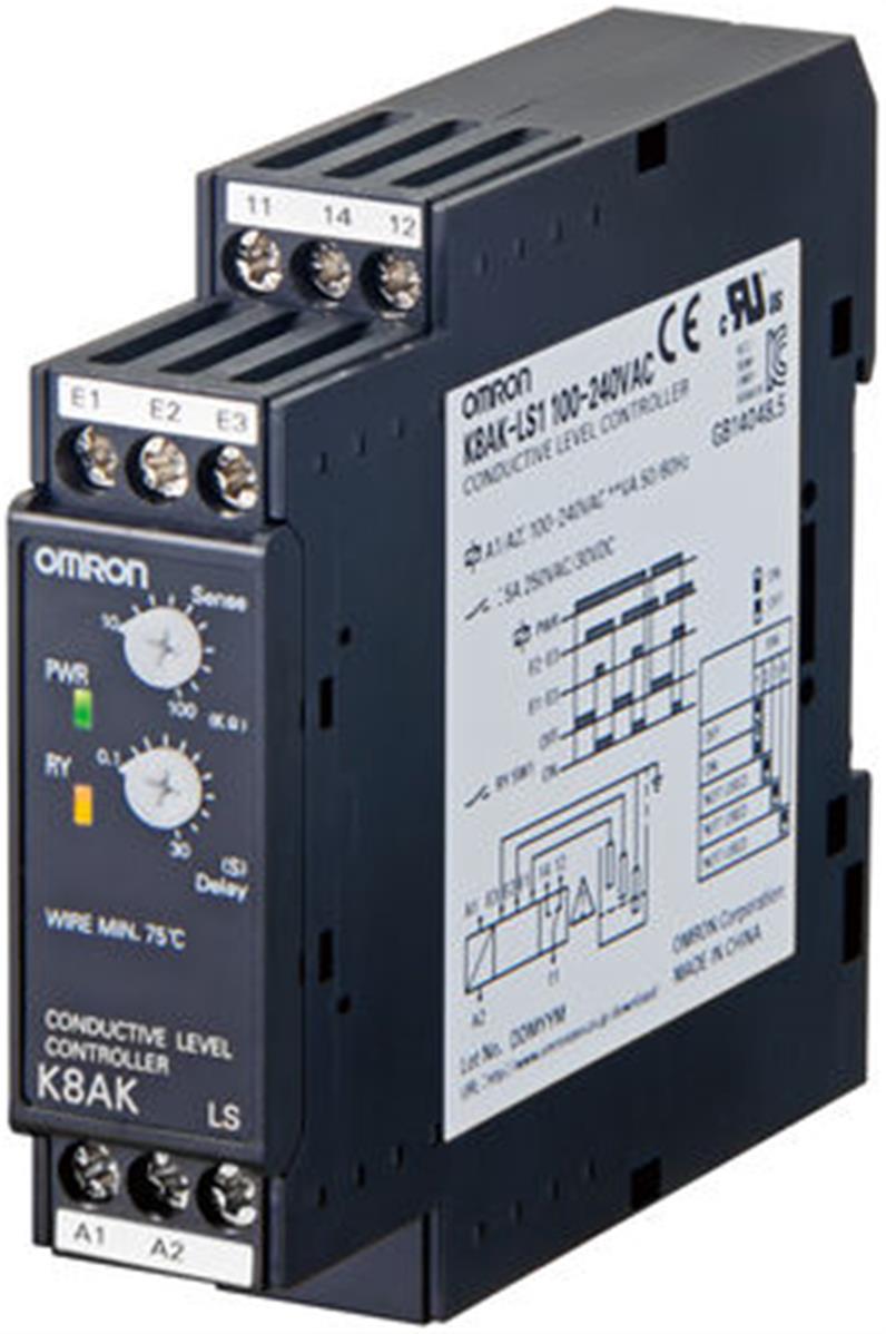 Le K8AK-LS1 est un contrôleur de niveau dans un boîtier industriel de 22,5 mm de large. Les commutateurs DIP permettent de sélectionner sa fonction (remplissage ou vidange). Ce produit est conçu pour le contrôle de niveau 1 ou 2 points.